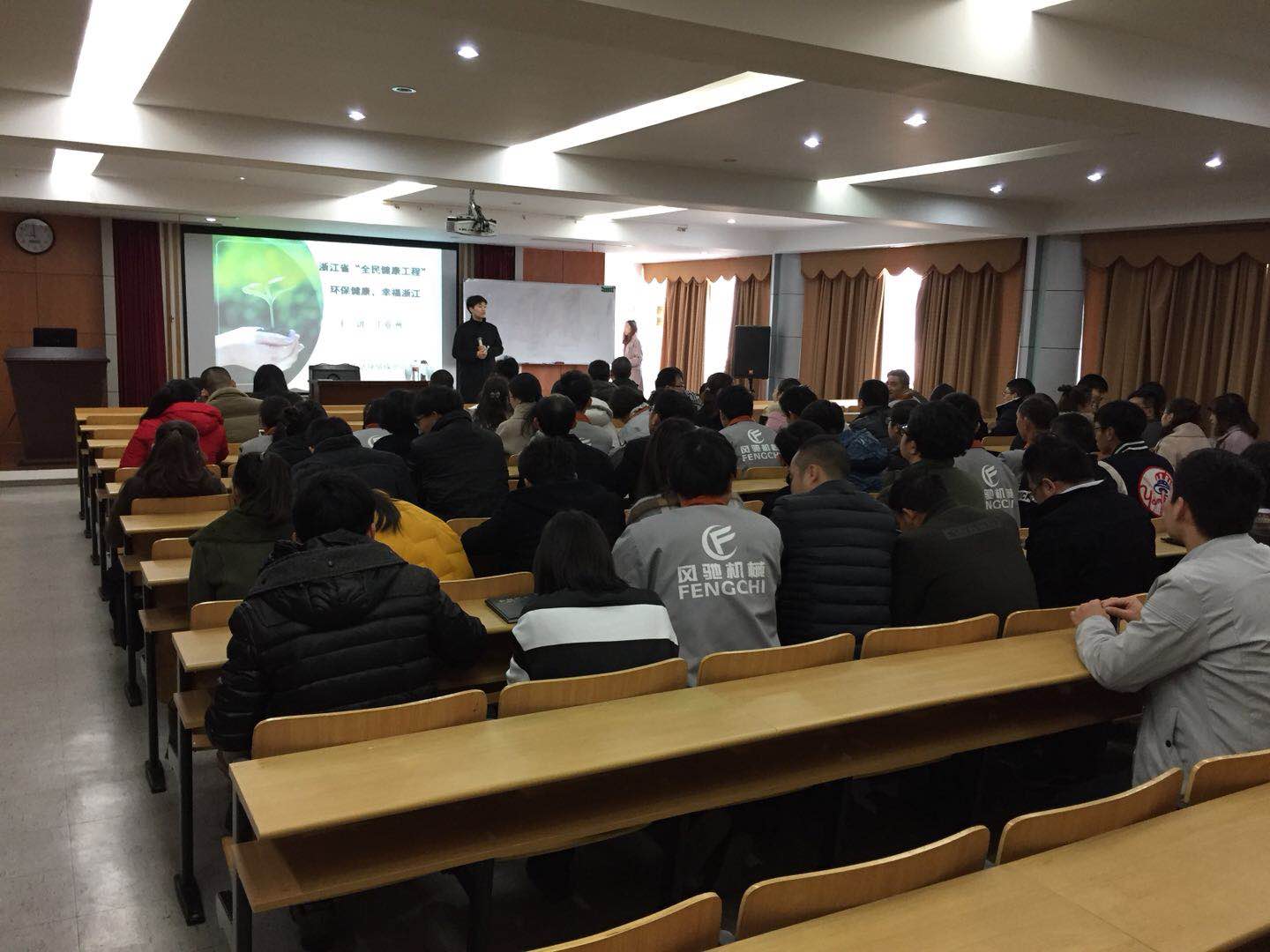 2018117日浙江新生活環境保護宣教中心走進風馳進行有關全民環保健康,共創美麗浙江的宣講活動,宣傳內容為環保衛生,垃圾分類,職工亞健康。