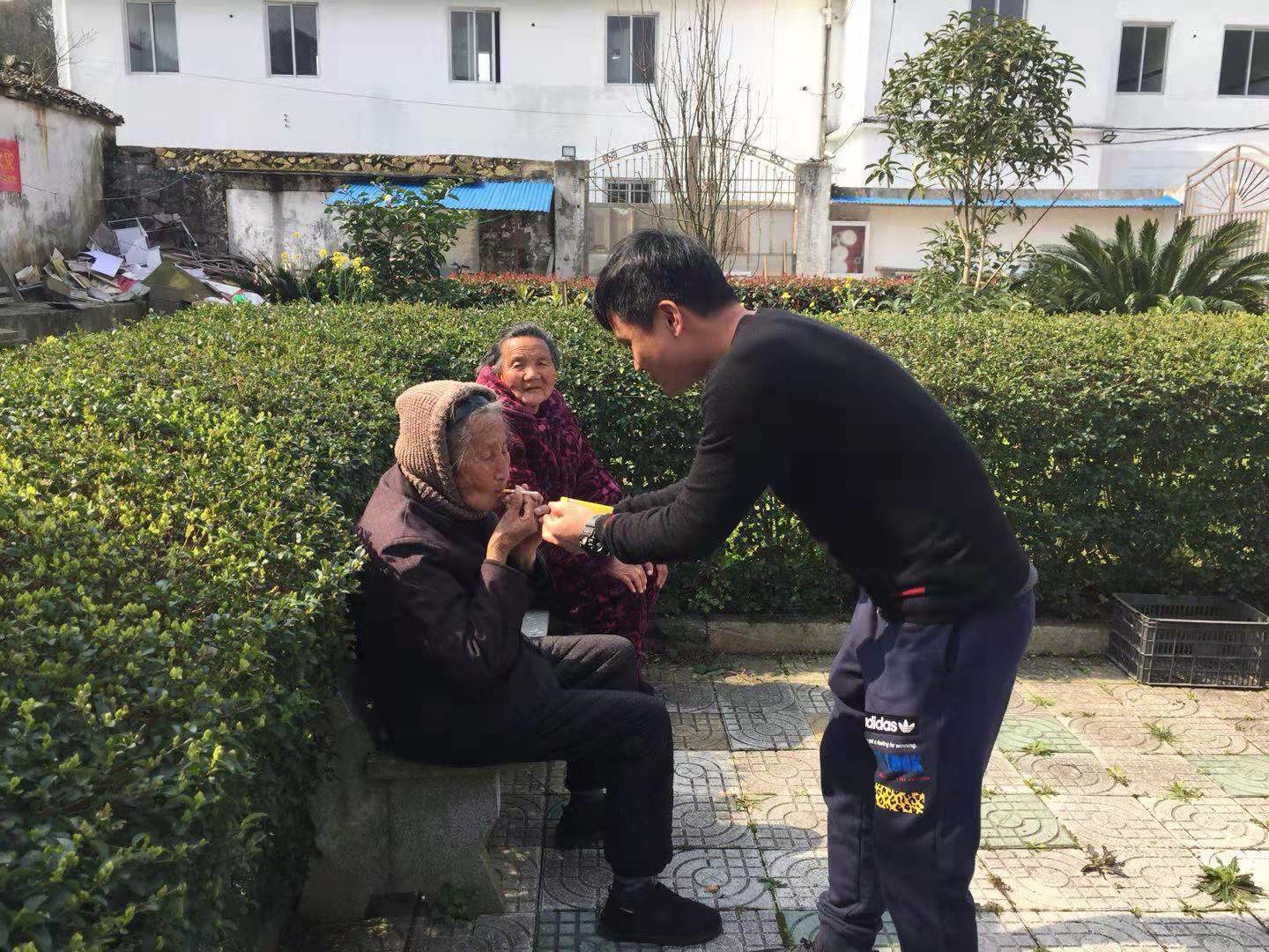 中午時分,公司董事長潘衛民、財務總監呂良君親臨烏坑山頭,他們倆一如往常的微笑,一如往常地握著老人們的手,他們沒有言語,只是微笑,只是與老人們點頭,我們只是看著,老人們的手分明握得緊緊的,緊緊的……